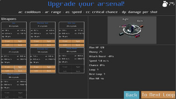 - allowing players to navigate between different shops (weapons, stats, time) to make the most of the money they've earned before starting a new loop