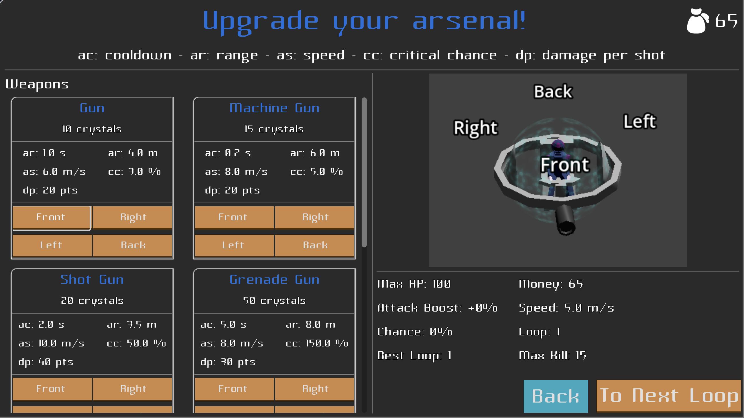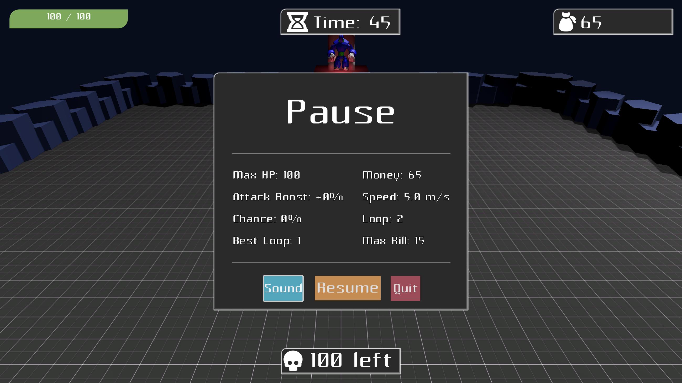 Loop Survivors was originally a game jam game, inspired (you'll never believe it) in part by Vampire Survivors, where you play as a gyrosphere pilot who must defeat 100 opponents within a set time limit to break the loop that imprisons the protagonist. After that, you can take it out on the final boss :-)
